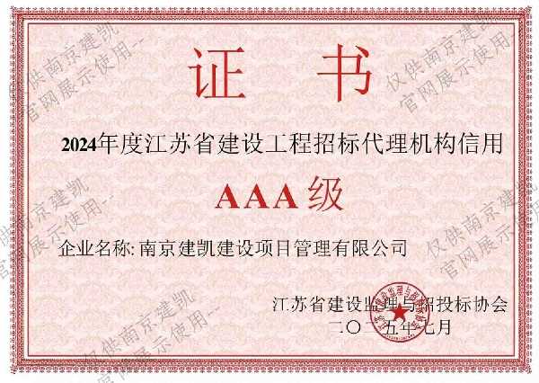 2024年度江蘇省建設(shè)工程招標(biāo)代理機(jī)構(gòu)信用AAA級(jí)
